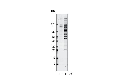 Ataxia telangiectasia mutated kinase (ATM) and ataxia telangiectasia and Rad3-related kinase (ATR) are related kinases that regulate cell cycle checkpoints and DNA repair (1). The identified substrates for ATM are p53, p95/NBS1, MDM2, Chk2, BRCA1, CtIP, 4E-BP1, and Chk1 (1,2) The essential requirement for the substrates of ATM/ATR is S*/T*Q. Hydrophobic amino acids at positions -3 and -1, and negatively charged amino acids at position +1 are positive determinants for substrate recognition by these kinases. Positively charged residues surrounding the S*/T*Q are negative determinants for substrate phosphorylation (3). The complex phenotype of AT cells suggests that it likely has additional substrates (3). To better understand the kinase and identify substrates for ATM and the related kinase ATR, CST has developed antibodies that recognize phosphorylated serine or threonine in the S*/T*Q motif.
