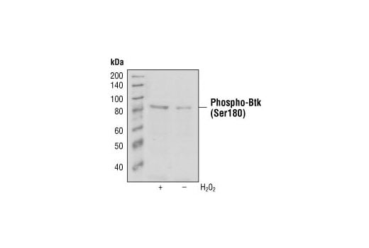 Phospho-Btk (Ser180) (3D3) Mouse Monoclonal Antibody detects endogenous levels of Btk only when phosphorylated at Ser180.