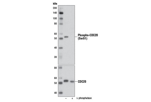 Phospho-CDC20 (Ser51) Antibody recognizes endogenous levels of CDC20 protein only when phosphorylated at Ser51.