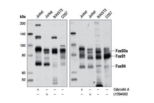 Phospho-FoxO1 (Thr24)/FoxO3a (Thr32)/FoxO4 (Thr28) (4G6) Rabbit Monoclonal Antibody #2599