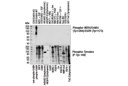 Phospho-HER4/ErbB4 (Tyr1284)/EGFR (Tyr1173) (21A9) Rabbit Monoclonal Antibody #4757