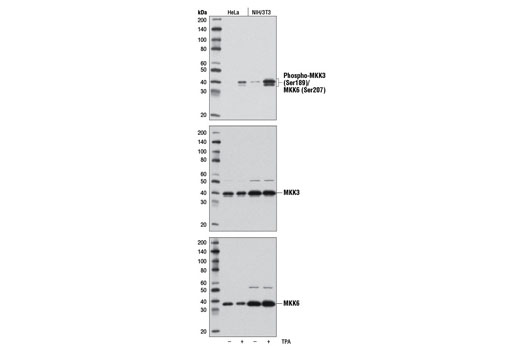 | MW (kDa) | 38 MKK6, 40 MKK3 |