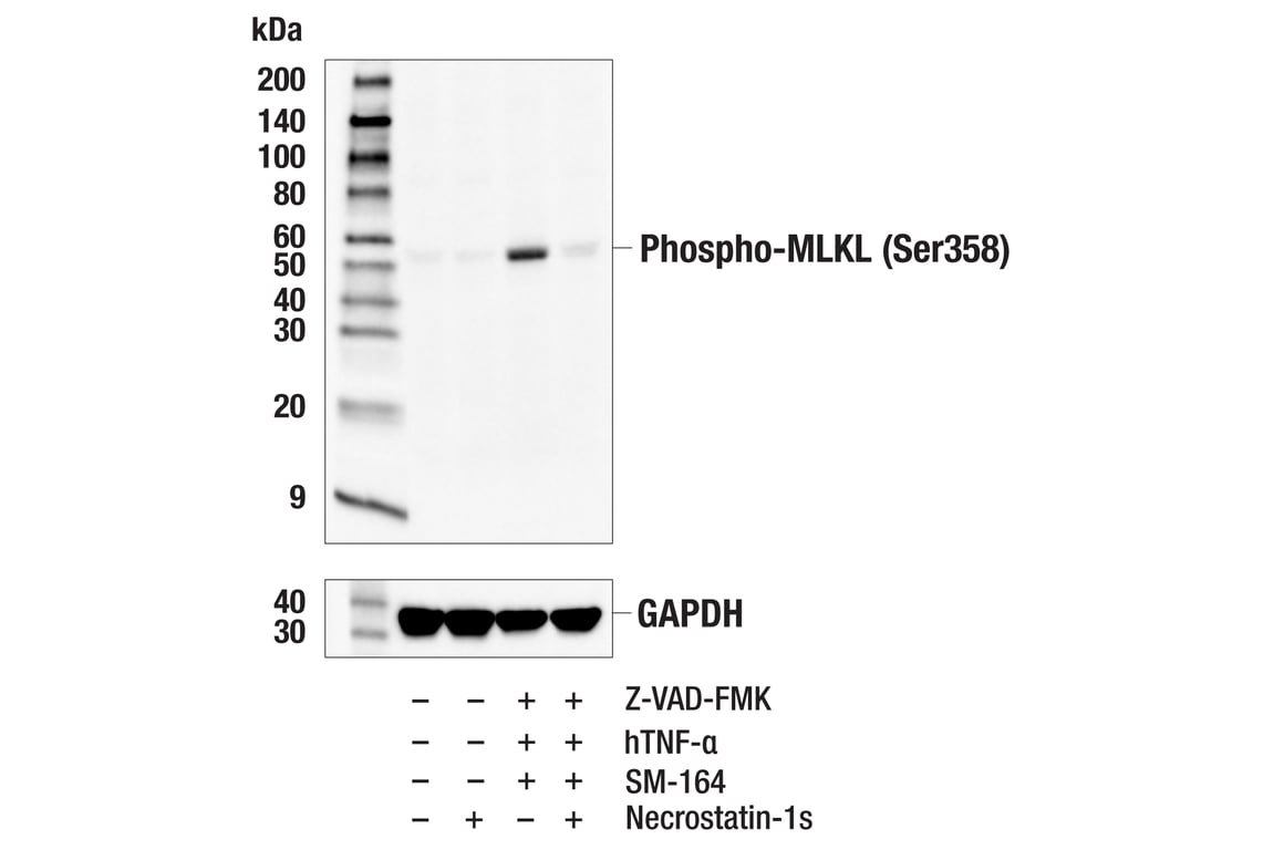 Phospho-MLKL (Ser358) (E7G7P) Rabbit Monoclonal Antibody (BSA and Azide Free) #42382