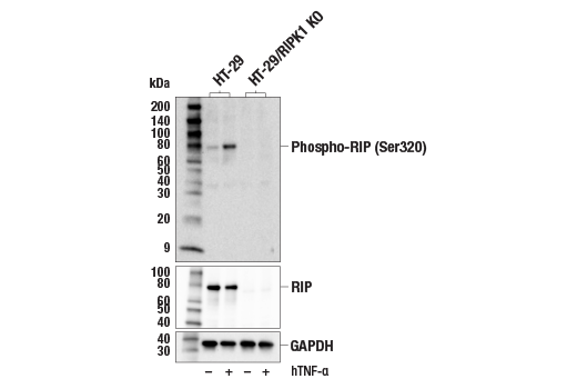 RIP is also phosphorylated at Ser321(mouse)/Ser320(human) by MAPKAPK-2 (MK-2) and TAK1 in response to inflammatory signals such as TNF-α and LPS (14-17). Phosphorylation at this site suppresses RIP mediated apoptosis by inhibiting its interaction with FADD and caspase-8 (14-17).