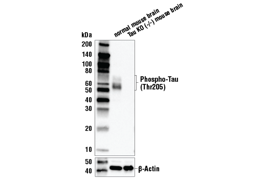 Phospho-Tau (Thr205) (E7D3E) Rabbit mAb recognizes endogenous levels of Tau protein only when phosphorylated at Thr205.