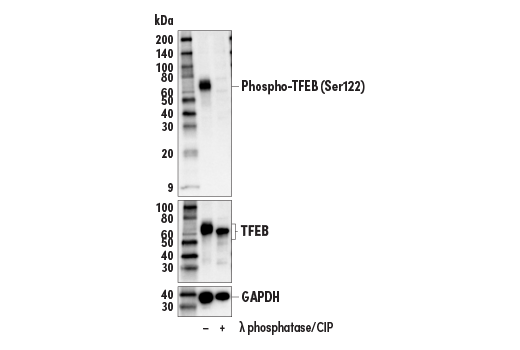 Phospho-TFEB (Ser122) (E9M5M) Rabbit Monoclonal Antibody recognizes endogenous levels of TFEB protein only when phosphorylated at Ser122.