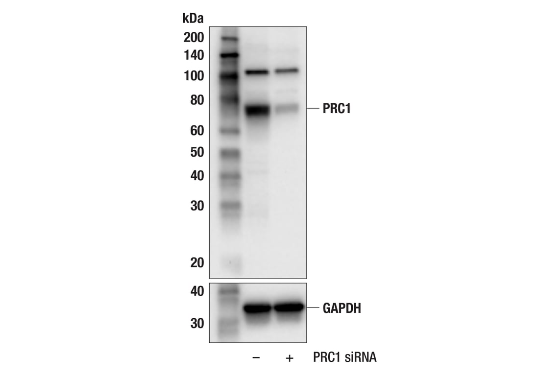 PRC1 (F7C7R) Rabbit Monoclonal Antibody recognizes endogenous levels of total PRC1 protein. This antibody detects a 110 kDa protein of unknown identity in some cell lines.