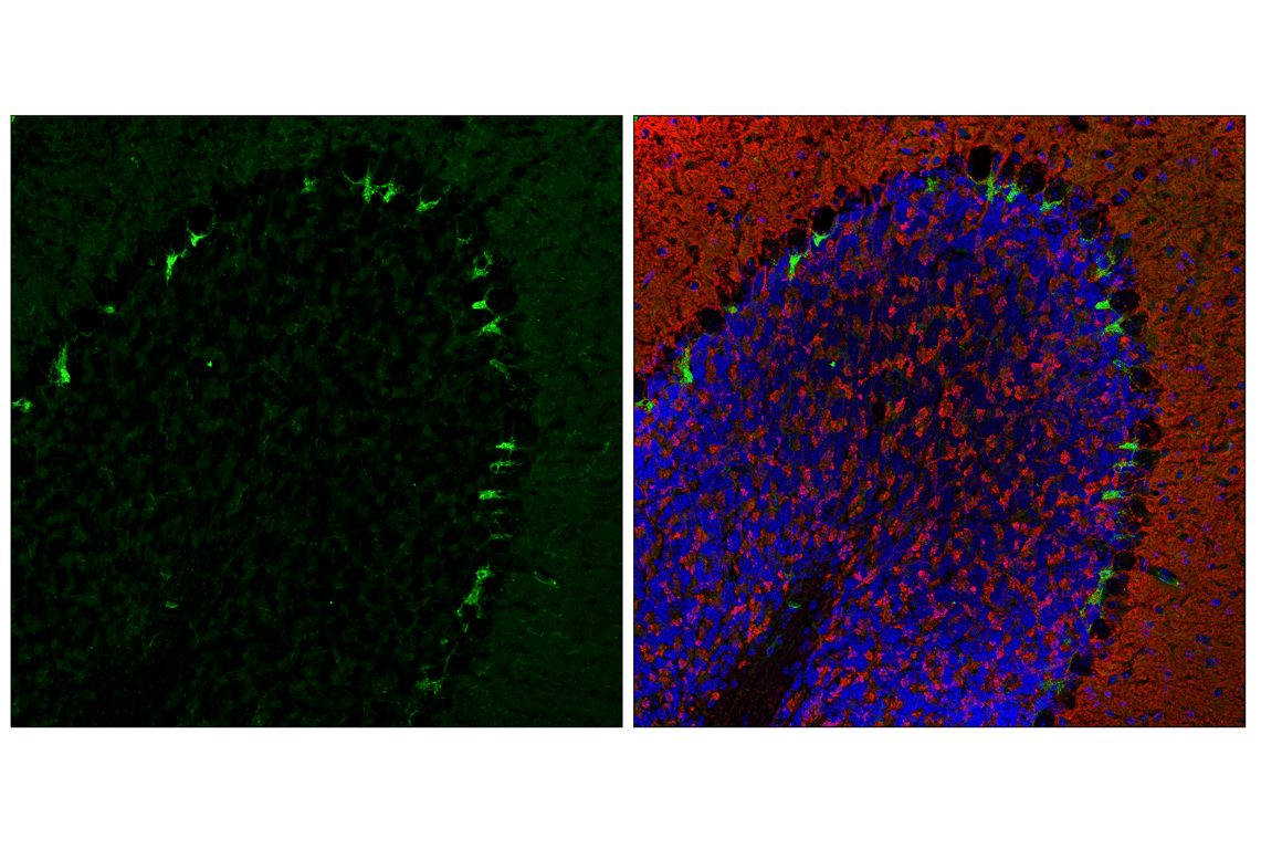 This recombinant chimeric antibody is engineered from PSD95 (D27E11) XP® Rabbit mAb #3450 according to animal-free protocols. The chimeric antibody retains its antigen-binding Fab regions from the original rabbit monoclonal antibody but contains a mouse-derived Fc domain. When multiplexing, Fc-directed rabbit secondaries are required to detect rabbit-host primary antibodies.