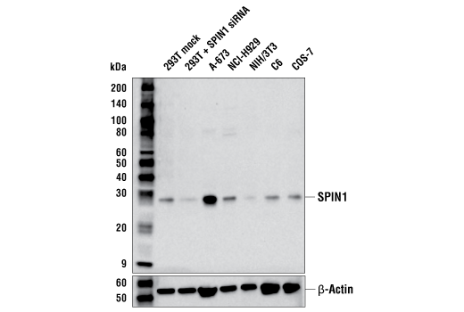 SPIN1 (E6R1Z) Rabbit Monoclonal Antibody recognizes endogenous levels of total SPIN1 protein.