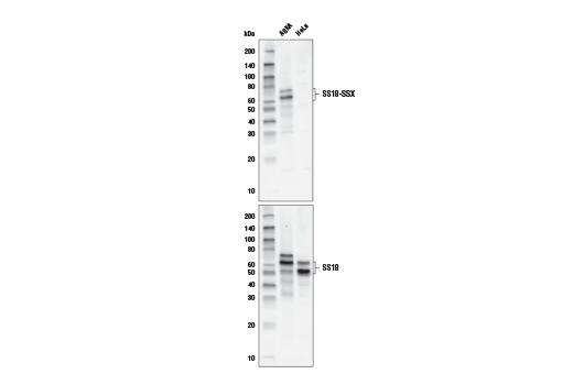 SS18-SSX Antibody recognizes endogenous levels of total SS18-SSX fusion protein. This antibody does not cross-react with wild-type SS18 or SSX proteins.