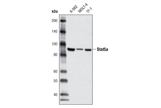 Stat5a (4H1) Mouse Monoclonal Antibody detects endogenous levels of total human Stat5a protein.