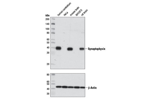 Synaptophysin (7H12) Mouse Monoclonal Antibody (BSA and Azide Free) recognizes endogenous levels of total synaptophysin protein.