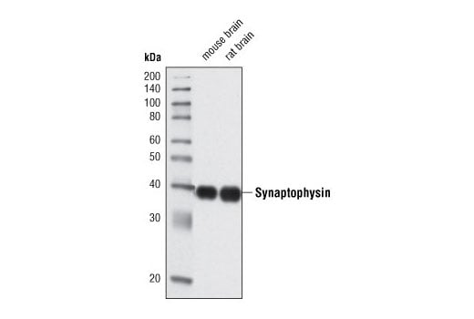 Synaptophysin (D35E4) Rabbit Monoclonal Antibody detects endogenous levels of total synaptophysin protein.