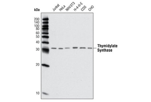 Thymidylate Synthase Antibody detects endogenous levels of total thymidylate synthase protein.