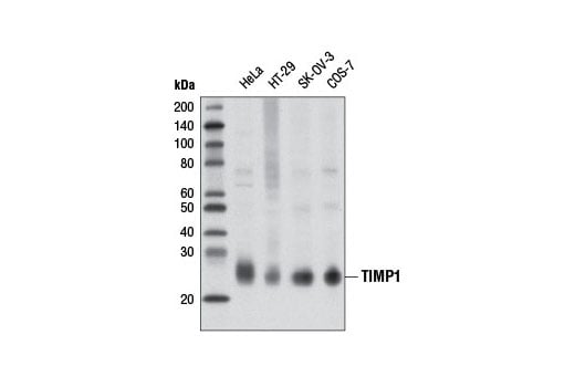 TIMP1 (D10E6) Rabbit Monoclonal Antibody recognizes endogenous levels of total TIMP1 protein.