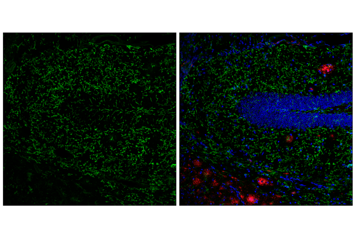 This recombinant chimeric antibody is engineered from TMEM119 (E3E1O) Rabbit mAb #90840 according to animal-free protocols. The chimeric antibody retains its antigen-binding Fab regions from the original rabbit monoclonal antibody, but contains a horse-derived Fc domain. When multiplexing, Fc-directed rabbit secondaries are required to detect rabbit-host primary antibodies.