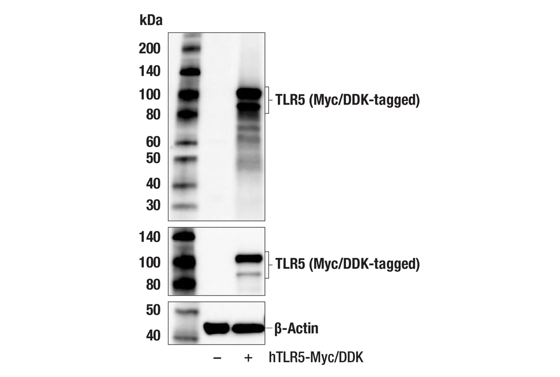 Toll-like Receptor 5 (D9O8Q) Rabbit Monoclonal Antibody recognizes transfected levels of total TLR5 protein.