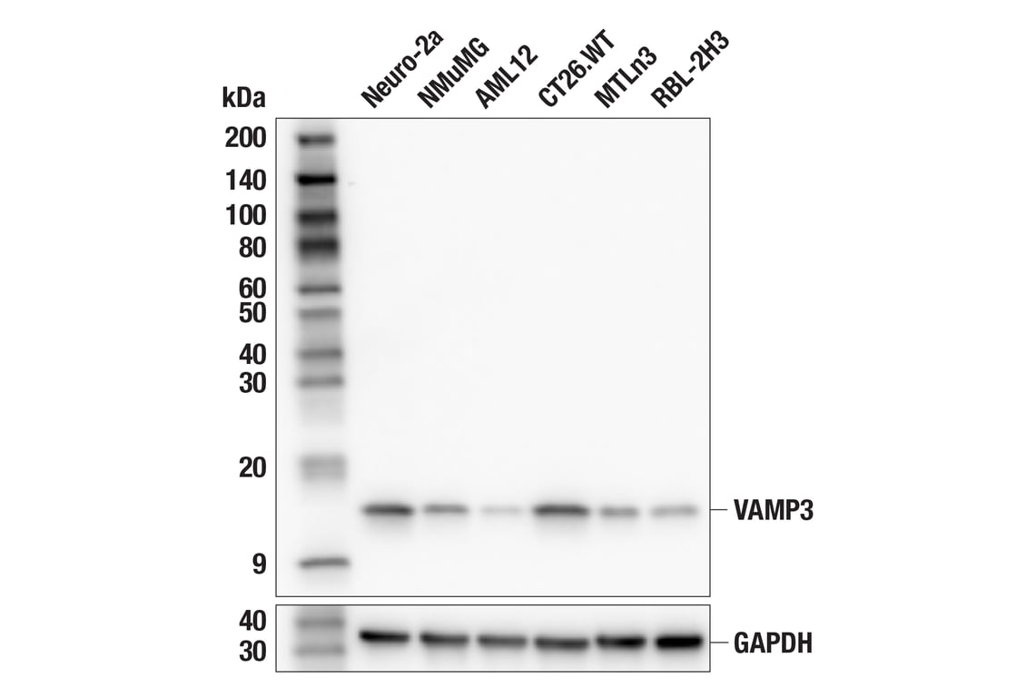 VAMP3 (F1G2Z) Rabbit Monoclonal Antibody recognizes endogenous levels of total VAMP3 protein.