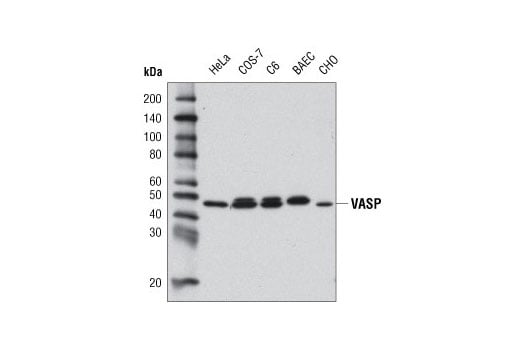 VASP (9A2) Rabbit Monoclonal Antibody detects endogenous levels of total VASP protein.