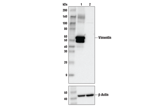 Vimentin (D21H3) Rabbit Monoclonal Antibody detects endogenous levels of total vimentin protein.