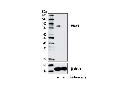 Wee1 (D10D2) Rabbit Monoclonal Antibody recognizes endogenous levels of total Wee1 protein.