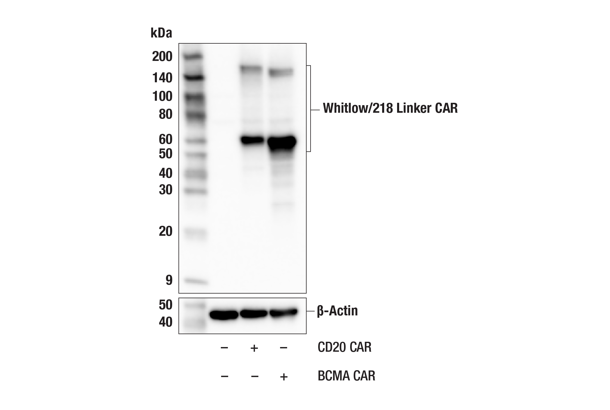 Whitlow/218 Linker (1B4A1) Mouse Monoclonal Antibody recognizes exogenously expressed levels of scFv-based CARs containing a Whitlow/218 linker.