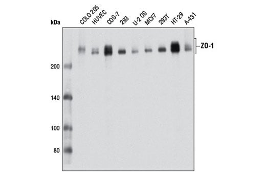 ZO-1 (D7D12) Rabbit mAb recognizes endogenous levels of total ZO-1 protein.