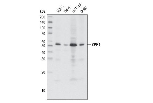 ZPR1 (LG1) Mouse Monoclonal Antibody detects endogenous levels of total ZPR1 protein.
