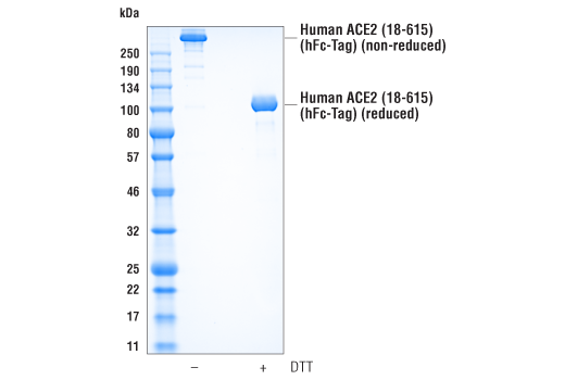 Human ACE2 (18-615) Recombinant Protein (hFc-Tag) is derived from a recombinant expression construct corresponding to the extracellular domain of human ACE2 protein, including the sequence regions that function as receptors for SARS and SARS-CoV-2 coronaviruses. The expressed protein contains a human IgG1 (Fc) Tag at its carboxy terminus.