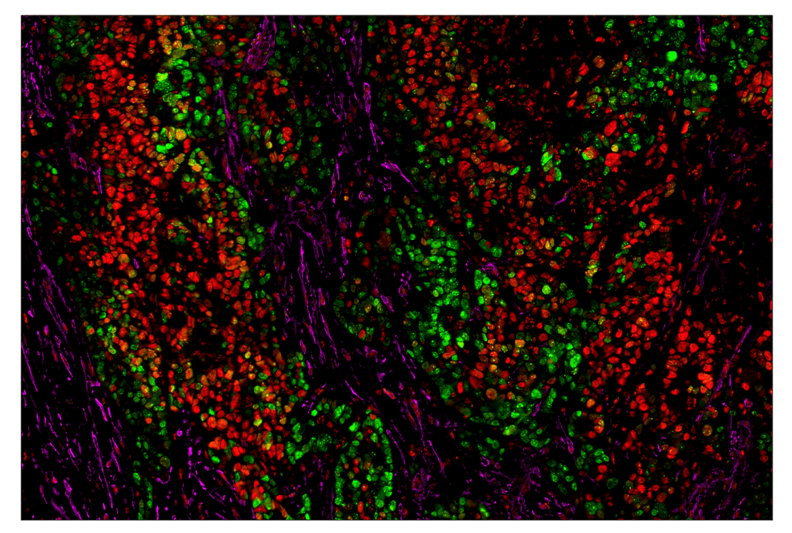 SignalStar Oligo-Antibody Pairs are compatible with the SignalStar Multiplex IHC Buffer Kits for use in fluorescent multiplex imaging experiments. This product includes the oligo-conjugated antibodies and complementary oligos required for labeling your target protein on up to 10 slides. SignalStar Multiplex IHC Buffer Kits are required to amplify and image the target signal. Multiple oligo-antibody pairs can be conveniently combined into a multiplex panel using the SignalStar Multiplex IHC Panel Builder. SignalStar Multiplex IHC Kits & Reagents are not compatible with all of Cell Signaling Technology® products and protocols that are recommended for use in immunohistochemical assays.