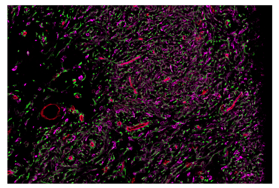 SignalStar Oligo-Antibody Pairs are compatible with the SignalStar Multiplex IHC Buffer Kits for use in fluorescent multiplex imaging experiments. This product includes the oligo-conjugated antibodies and complementary oligos required for labeling your target protein on up to 10 slides. SignalStar Multiplex IHC Buffer Kits are required to amplify and image the target signal. Multiple oligo-antibody pairs can be conveniently combined into a multiplex panel using the SignalStar Multiplex IHC Panel Builder. SignalStar Multiplex IHC Kits & Reagents are not compatible with all of Cell Signaling Technology® products and protocols that are recommended for use in immunohistochemical assays.