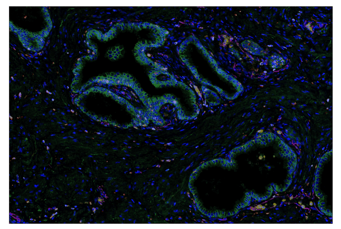 SignalStar Oligo-Antibody Pairs are compatible with the SignalStar Multiplex IHC Buffer Kits for use in fluorescent multiplex imaging experiments. This product includes the oligo-conjugated antibodies and complementary oligos required for labeling your target protein on up to 10 slides. SignalStar Multiplex IHC Buffer Kits are required to amplify and image the target signal. Multiple oligo-antibody pairs can be conveniently combined into a multiplex panel using the SignalStar Multiplex IHC Panel Builder. SignalStar Multiplex IHC Kits & Reagents are not compatible with all of Cell Signaling Technology® products and protocols that are recommended for use in immunohistochemical assays.