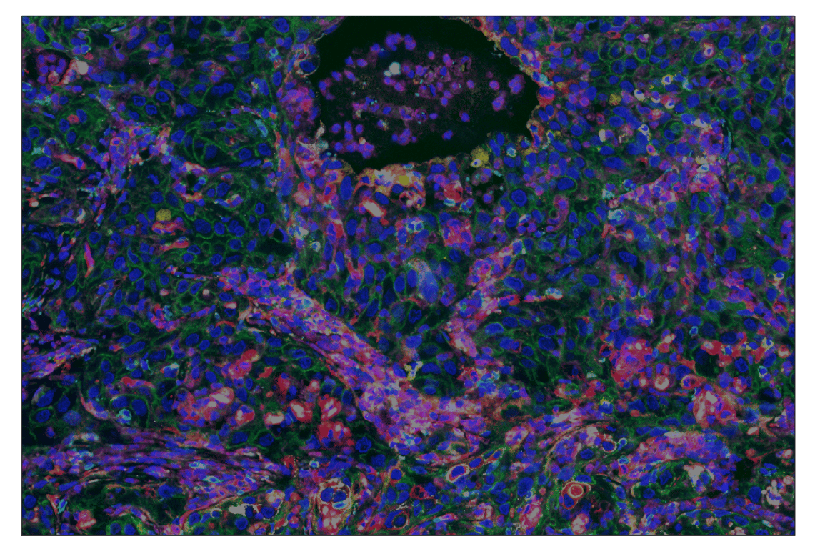 SignalStar Oligo-Antibody Pairs are compatible with the SignalStar Multiplex IHC Buffer Kits for use in fluorescent multiplex imaging experiments. This product includes the oligo-conjugated antibodies and complementary oligos required for labeling your target protein on up to 10 slides. SignalStar Multiplex IHC Buffer Kits are required to amplify and image the target signal. Multiple oligo-antibody pairs can be conveniently combined into a multiplex panel using the SignalStar Multiplex IHC Panel Builder. SignalStar Multiplex IHC Kits & Reagents are not compatible with all of Cell Signaling Technology® products and protocols that are recommended for use in immunohistochemical assays.
