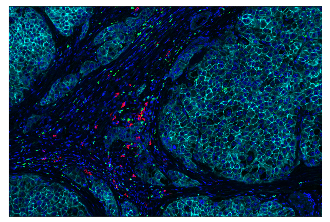 SignalStar Oligo-Antibody Pairs are compatible with the SignalStar Multiplex IHC Buffer Kits for use in fluorescent multiplex imaging experiments. This product includes the oligo-conjugated antibodies and complementary oligos required for labeling your target protein on up to 10 slides. SignalStar Multiplex IHC Buffer Kits are required to amplify and image the target signal. Multiple oligo-antibody pairs can be conveniently combined into a multiplex panel using the SignalStar Multiplex IHC Panel Builder. SignalStar Multiplex IHC Kits & Reagents are not compatible with all of Cell Signaling Technology® products and protocols that are recommended for use in immunohistochemical assays.