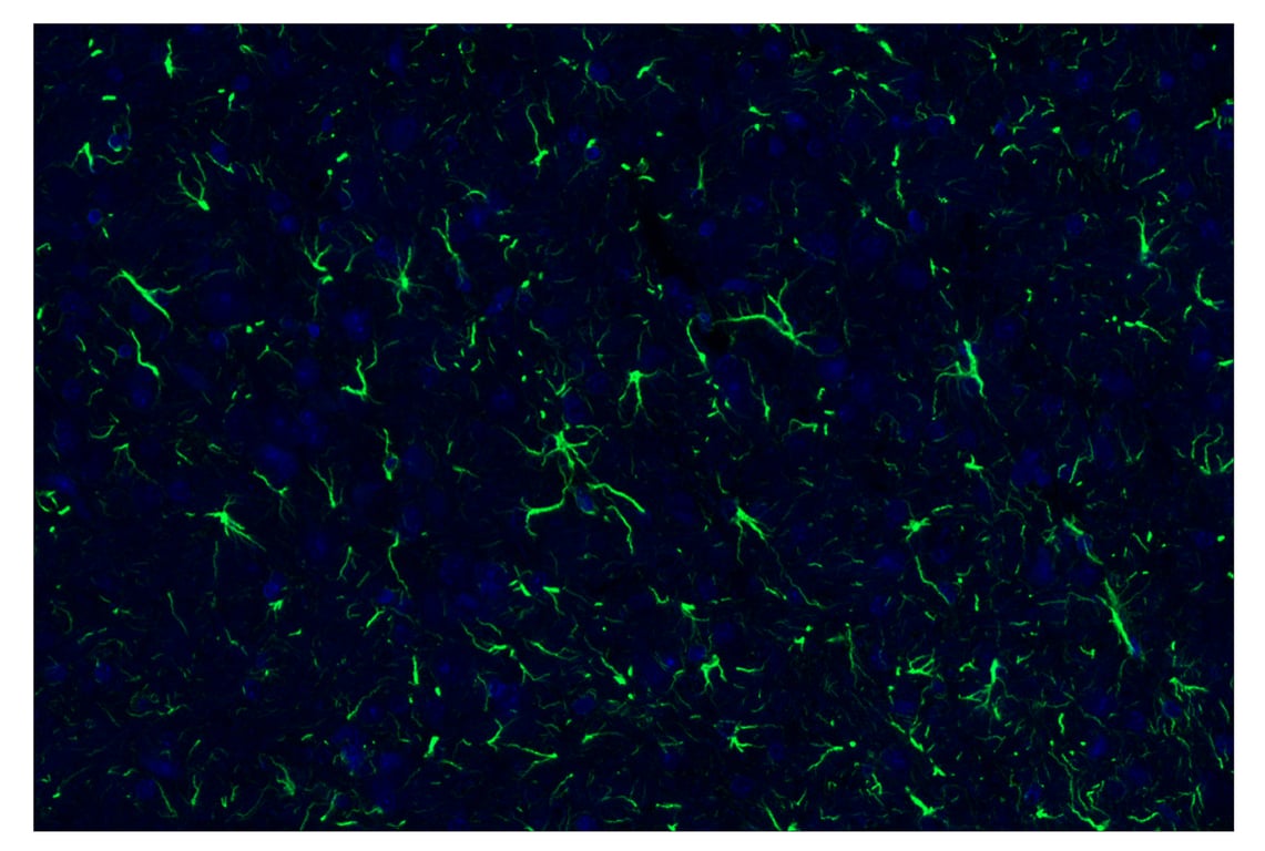 GFAP (E4L7M) Rabbit Monoclonal Antibody (SignalStar™ Conjugate 0097) recognizes endogenous levels of total GFAP protein.