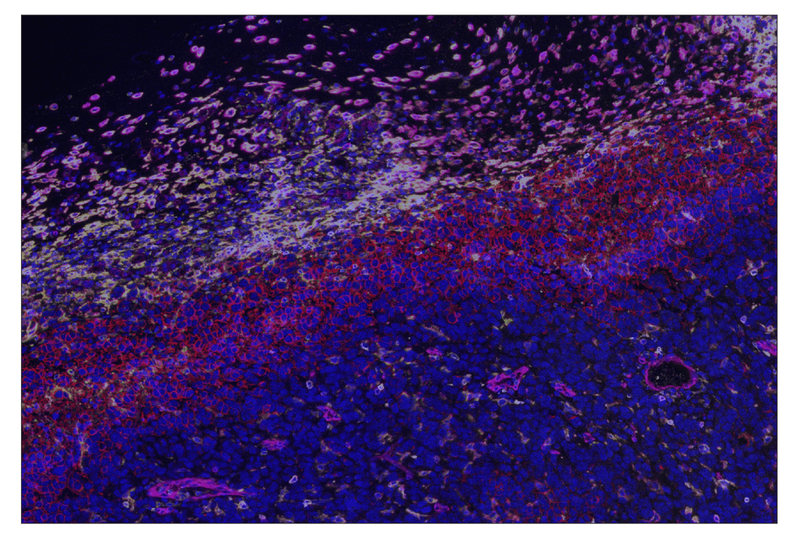 SignalStar Oligo-Antibody Pairs are compatible with the SignalStar Multiplex IHC Buffer Kits for use in fluorescent multiplex imaging experiments. This product includes the oligo-conjugated antibodies and complementary oligos required for labeling your target protein on up to 10 slides. SignalStar Multiplex IHC Buffer Kits are required to amplify and image the target signal. Multiple oligo-antibody pairs can be conveniently combined into a multiplex panel using the SignalStar Multiplex IHC Panel Builder. SignalStar Multiplex IHC Kits & Reagents are not compatible with all of Cell Signaling Technology® products and protocols that are recommended for use in immunohistochemical assays.