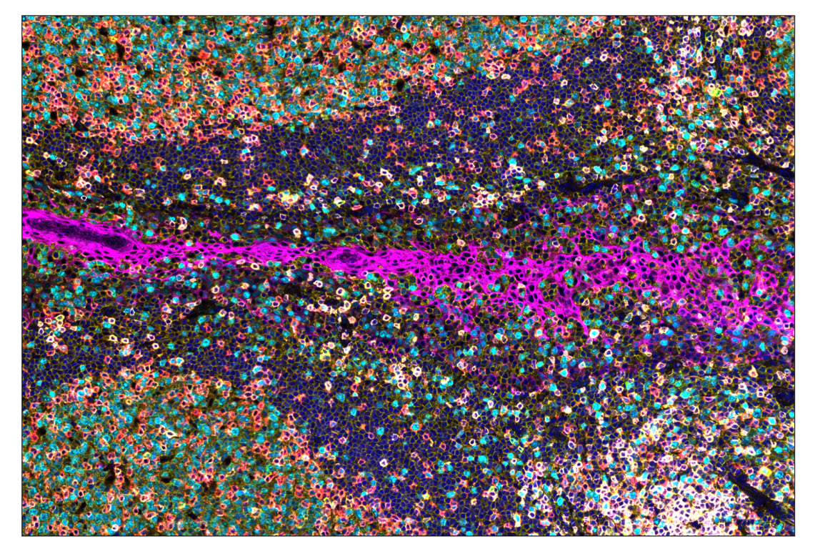 SignalStar Oligo-Antibody Pairs are compatible with the SignalStar Multiplex IHC Buffer Kits for use in fluorescent multiplex imaging experiments. This product includes the oligo-conjugated antibodies and complementary oligos required for labeling your target protein on up to 10 slides. SignalStar Multiplex IHC Buffer Kits are required to amplify and image the target signal. Multiple oligo-antibody pairs can be conveniently combined into a multiplex panel using the SignalStar Multiplex IHC Panel Builder. SignalStar Multiplex IHC Kits & Reagents are not compatible with all of Cell Signaling Technology® products and protocols that are recommended for use in immunohistochemical assays.
