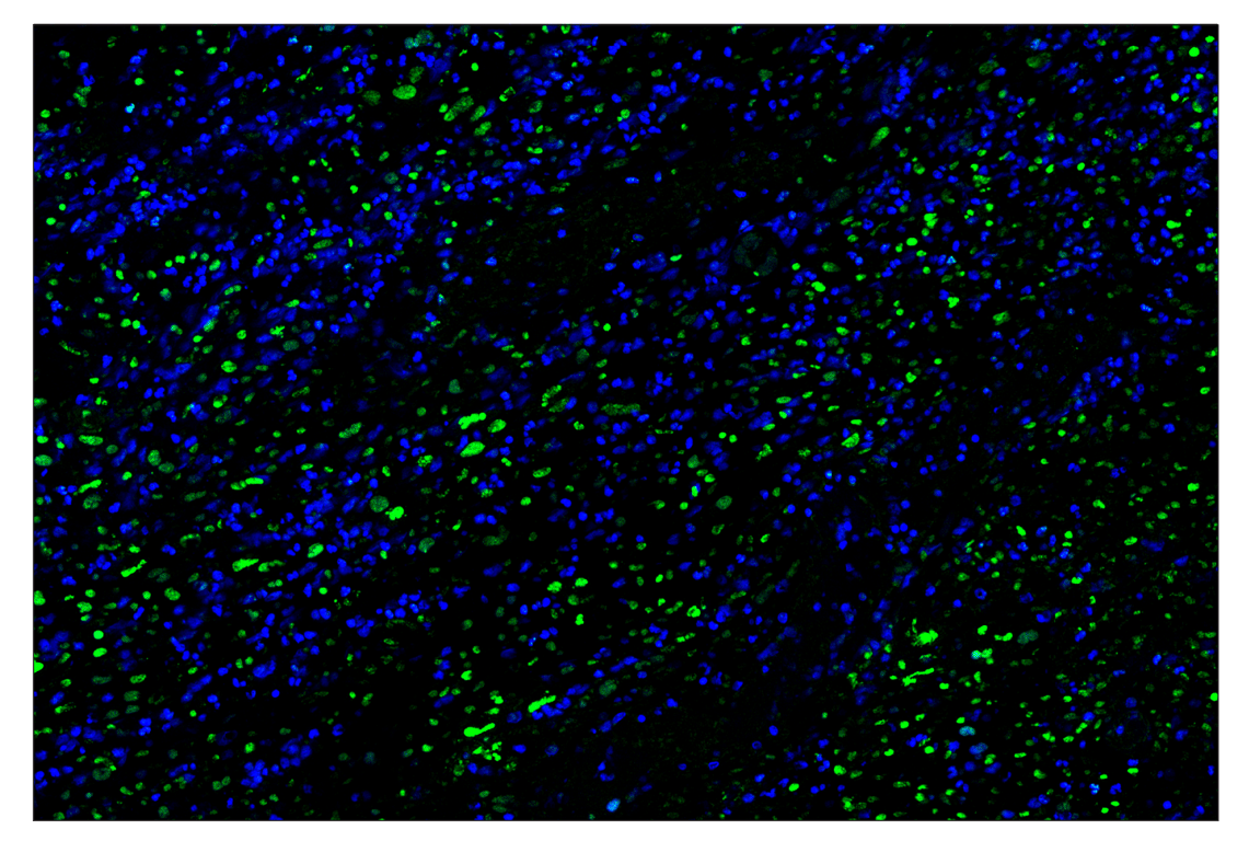 SignalStar Oligo-Antibody Pairs are compatible with the SignalStar Multiplex IHC Buffer Kits for use in fluorescent multiplex imaging experiments. This product includes the oligo-conjugated antibodies and complementary oligos required for labeling your target protein on up to 10 slides. SignalStar Multiplex IHC Buffer Kits are required to amplify and image the target signal. Multiple oligo-antibody pairs can be conveniently combined into a multiplex panel using the SignalStar Multiplex IHC Panel Builder. SignalStar Multiplex IHC Kits & Reagents are not compatible with all of Cell Signaling Technology® products and protocols that are recommended for use in immunohistochemical assays.