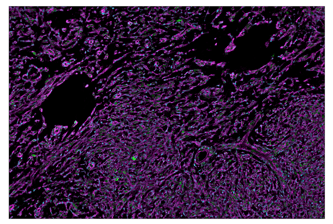 SignalStar Oligo-Antibody Pairs are compatible with the SignalStar Multiplex IHC Buffer Kits for use in fluorescent multiplex imaging experiments. This product includes the oligo-conjugated antibodies and complementary oligos required for labeling your target protein on up to 10 slides. SignalStar Multiplex IHC Buffer Kits are required to amplify and image the target signal. Multiple oligo-antibody pairs can be conveniently combined into a multiplex panel using the SignalStar Multiplex IHC Panel Builder. SignalStar Multiplex IHC Kits & Reagents are not compatible with all of Cell Signaling Technology® products and protocols that are recommended for use in immunohistochemical assays.