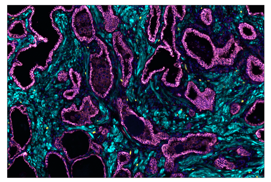 SignalStar Oligo-Antibody Pairs are compatible with the SignalStar Multiplex IHC Buffer Kits for use in fluorescent multiplex imaging experiments. This product includes the oligo-conjugated antibodies and complementary oligos required for labeling your target protein on up to 10 slides. SignalStar Multiplex IHC Buffer Kits are required to amplify and image the target signal. Multiple oligo-antibody pairs can be conveniently combined into a multiplex panel using the SignalStar Multiplex IHC Panel Builder. SignalStar Multiplex IHC Kits & Reagents are not compatible with all of Cell Signaling Technology® products and protocols that are recommended for use in immunohistochemical assays.