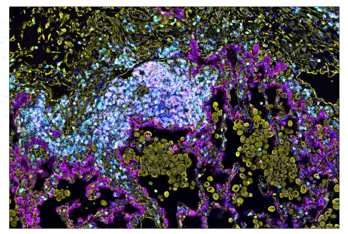 SignalStar Oligo-Antibody Pairs are compatible with the SignalStar Multiplex IHC Buffer Kits for use in fluorescent multiplex imaging experiments. This product includes the oligo-conjugated antibodies and complementary oligos required for labeling your target protein on up to 10 slides. SignalStar Multiplex IHC Buffer Kits are required to amplify and image the target signal. Multiple oligo-antibody pairs can be conveniently combined into a multiplex panel using the SignalStar Multiplex IHC Panel Builder. SignalStar Multiplex IHC Kits & Reagents are not compatible with all of Cell Signaling Technology® products and protocols that are recommended for use in immunohistochemical assays.