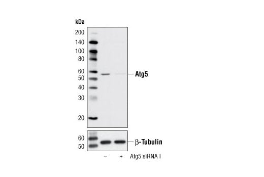 CST recommends transfection with 100 nM SignalSilence® Atg5 siRNA I 48 to 72 hours prior to cell lysis. For transfection procedure, follow protocol provided by the transfection reagent manufacturer. Please feel free to contact CST with any questions on use.