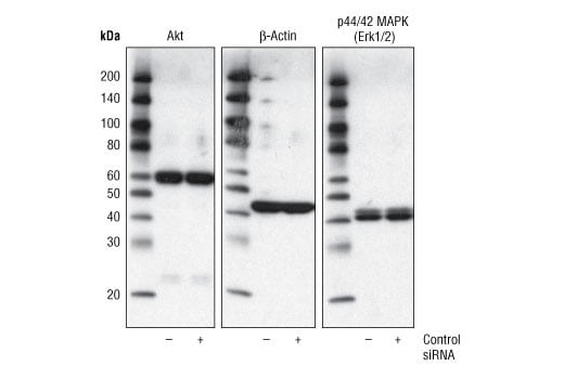 CST recommends transfection with 100 nM Control siRNA II 48 to 72 hours prior to cell lysis. For transfection procedure, follow protocol provided by the transfection reagent manufacturer. Please feel free to contact CST with any questions on use.