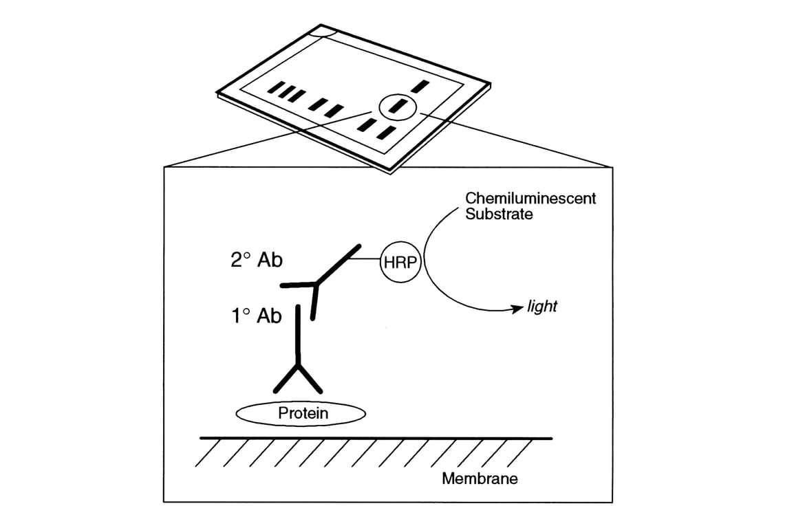 1. Wash membrane-bound HRP (antibody conjugate) three times, for 5 minutes in TBS/T (20 mM Tris-HCl (pH 7.6),137 mM NaCl and 0.1% Tween-20)